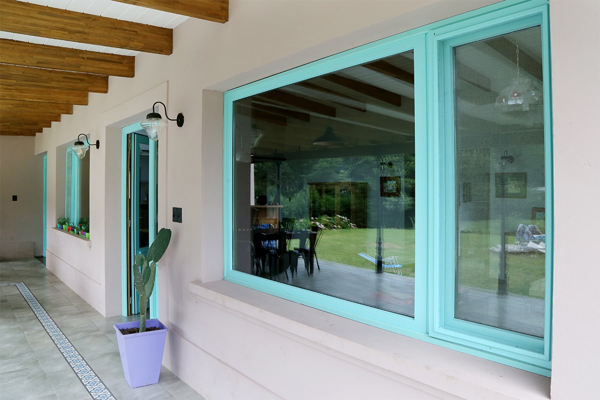 Puerta de acceso, puertas con tablero y vidrio, mosquiteros, ventanas banderola, practicables triple contacto, corrediza.